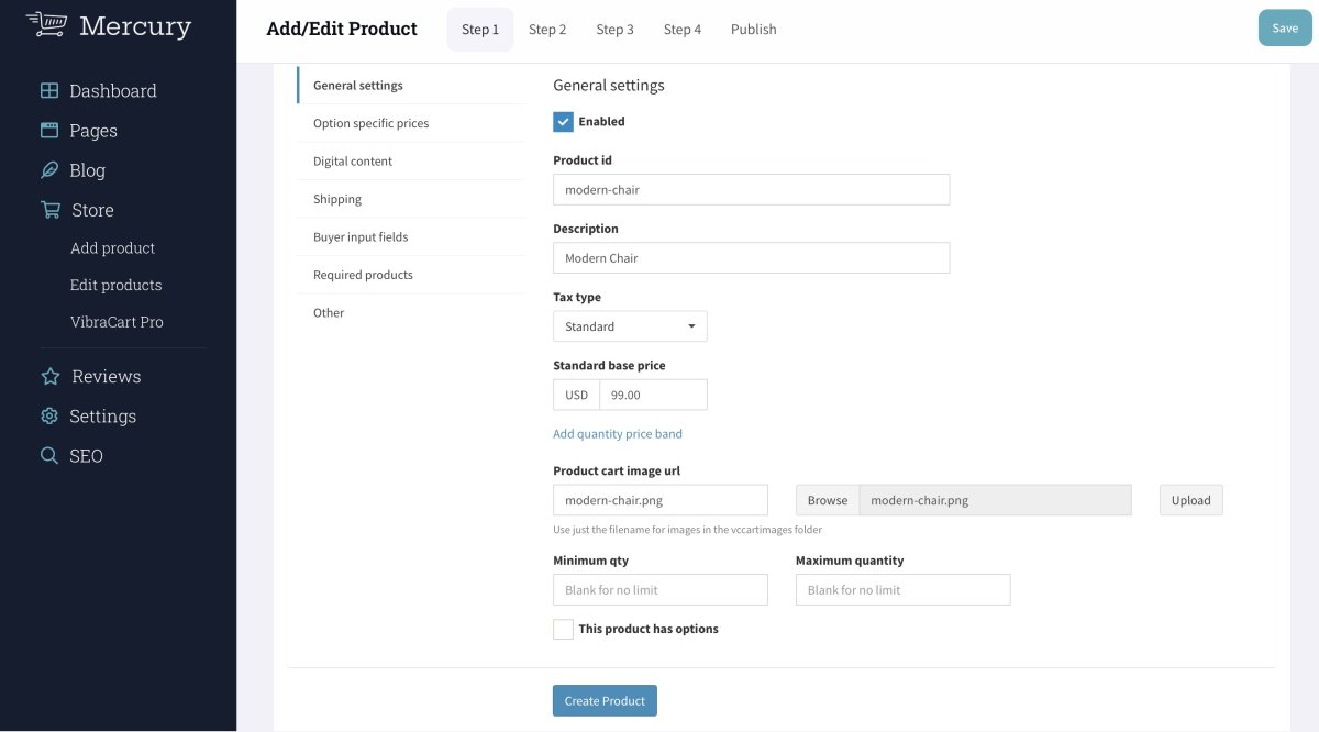 Yeas you have successfully created a new product on your store if you want to see the product we have just uploaded here is what we just published on Mercury Demo website.