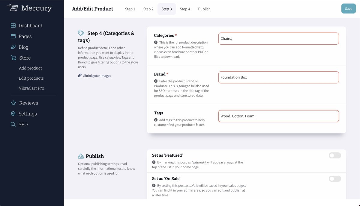 Step 4 (Categories & tags)